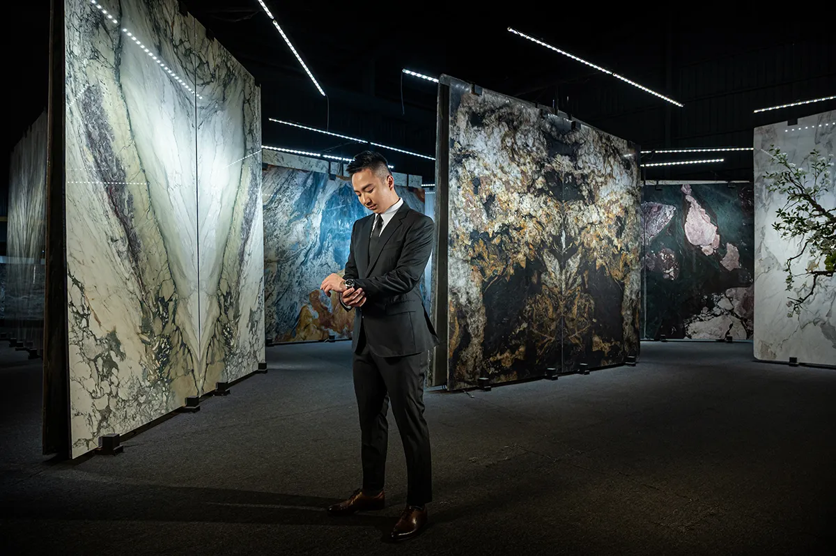 「靜下心來,拋開原來的想法,好好去欣賞每一塊石材;來自石材的呼喚,會讓你看見不一樣的自己。」——承豪石材執行長Kyle。