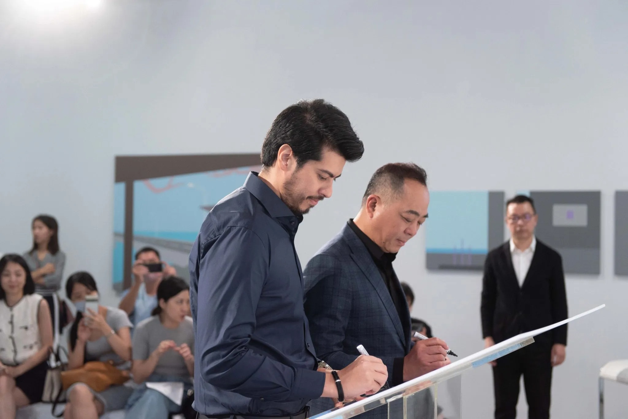 承豪石材與巴西Tiffany礦區簽下在台獨家代理權,區域獨家代理模式將Tiffany奢石引進台灣。圖左:承豪石材有限公司品牌長 陳昱愷、圖右:Granistone CEO Hugo Meneses奢石與藝術跨界對話