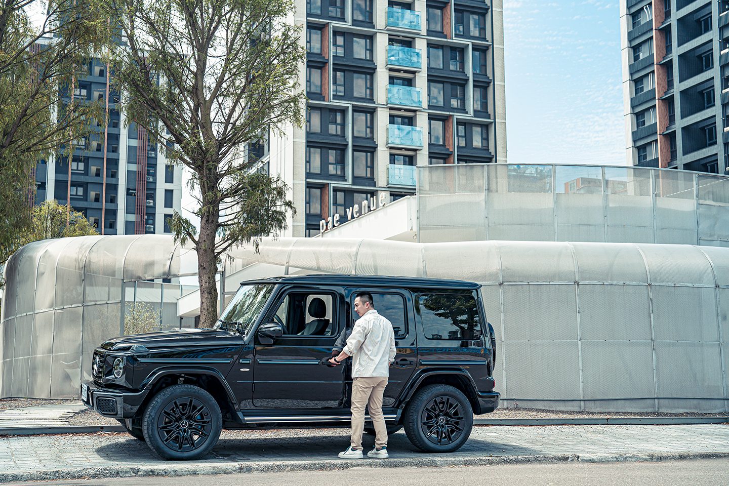 到了夜晚,行程未必就此結束,有時,他仍得趕回市區參加重要聚餐或品牌活動;這時,純電 G-Class 的存在感便更顯重要—沉穩不失風格,在正式場合中自然展現個人品味與魅力,「對我來說,這樣的車除了日常代步,更像是陪伴我從生活到工作、從山野到城市,穩定穿梭的夥伴。」