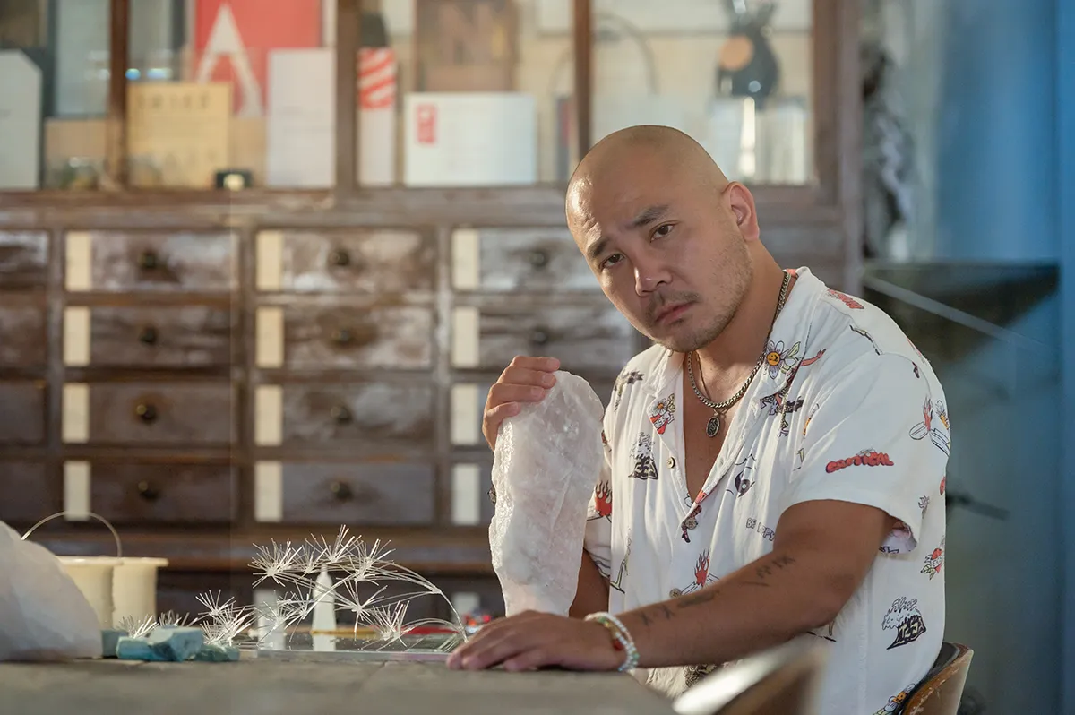 Kyle:沒錯!這真是一場奇妙的緣分。這幾年我陸續在不同場合看過李霽的作品,也知道他長期收藏水晶,心中其實早就醞釀合作的念頭。沒想到,在知名咖啡品牌旗艦店,我們的作品竟然同時出現在同一空間——那裡的牆面選用了我們的「#藍絲絨」奢石,而李霽的《解壓縮》(Unfolding Composition)與《滙載》(Encapsulate)裝置創作也在這裡現身。天然石材的深邃紋理與藝術作品的能量場交會,讓人感受到材質與情感真正的對話。那一刻,我覺得這不只是設計,而是在當下此刻,承豪石材與李霽都以各自最好的狀態,成為塑造這個城市生活美學的一份子。